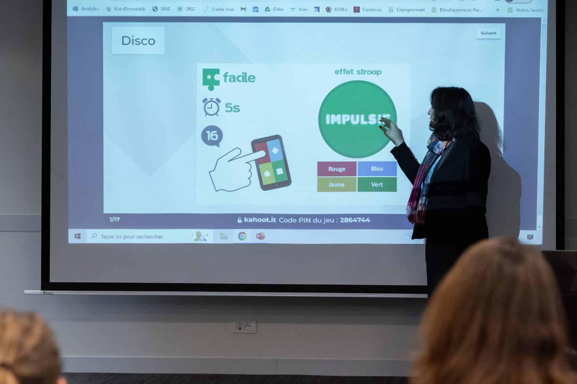 Exercices variés (individuels, en binômes, en groupes), quiz et challenges interactifs sur support numérique, moments conviviaux et collaboratifs.